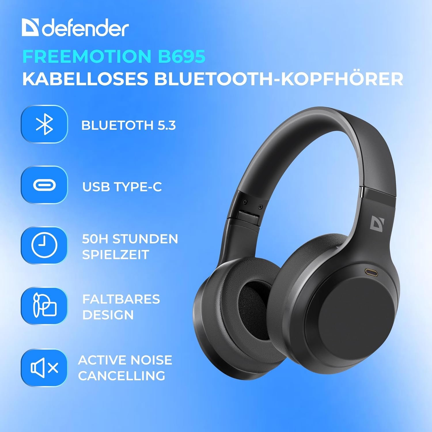 Defender FreeMotion B695 ANC Bluetooth Wireless Stereo Headset Black